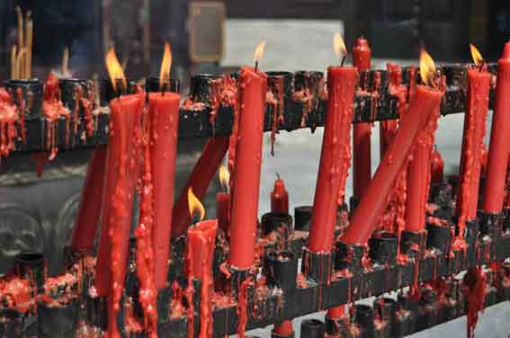 Der Cien Tempel ist ein Ort der Ruhe und Stille. Vor dem Gebet werden rote Kerzen und Räucherstäbchen angezündet. Mönche sitzem im Schatten und lassen den Tag geruhsam an sich vorbei ziehen. Sie kennen keinen Stress und keine Hektik.